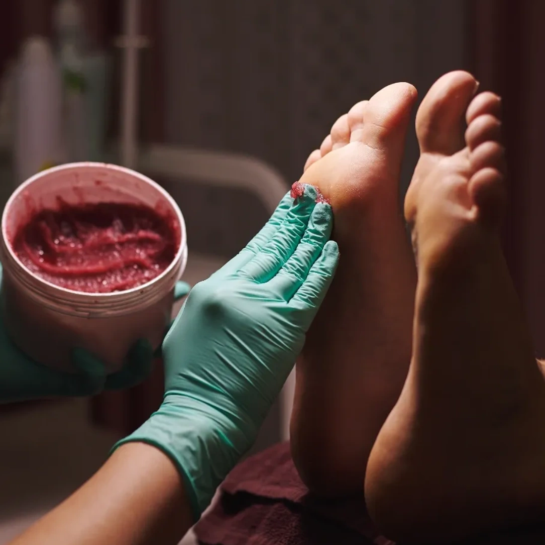 Nourishing foot care and deep relaxation, received on a cozy massage table.